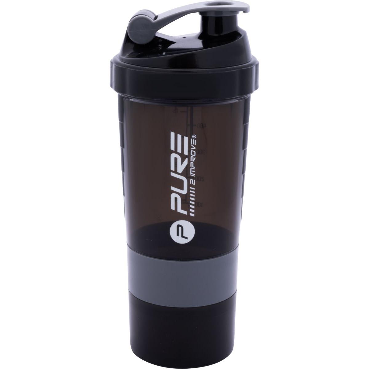 BIDON FITNESS SHAKER 500ML BLACK/GREY PURE 2 IMPROVE jest niezbędnym gadżetem każdego sportowca i nie tylko. Pozwoli Ci na wymieszanie białkowej odżywki, gaineru (odżywki na masę) keratyny czy koktajlu dietetycznego! Prawidłowo wymieszana odżywka, taka bez grudek pozwoli Ci czerpać sto procent składników odżywczych z przygotowanej mieszanki.