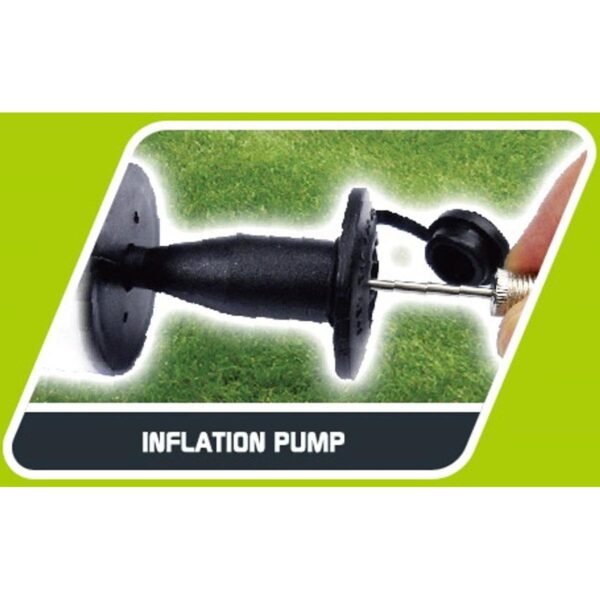 Do bramki dołączono dmuchaną piłkę i pompkę, dzięki czemu po rozpakowaniu, osadzeniu bramki za pomocą śledzi i napompowaniu piłki Twoje dziecko może rozpocząć grę.
