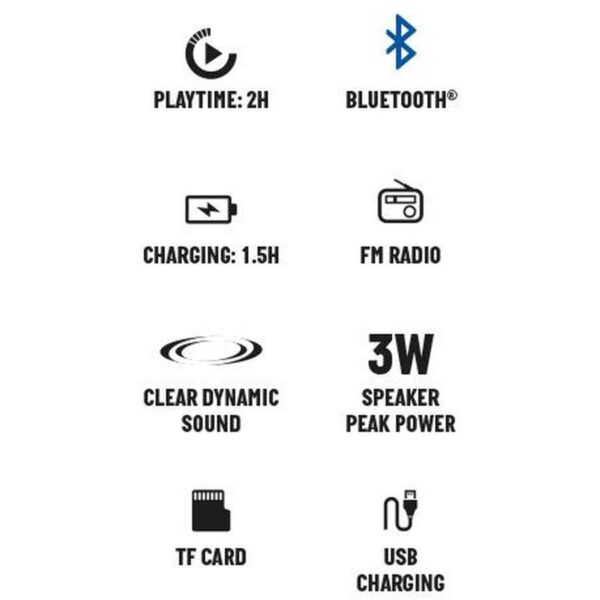 - Czas działania 2 godzin (przy głośności na poziomie 50%)