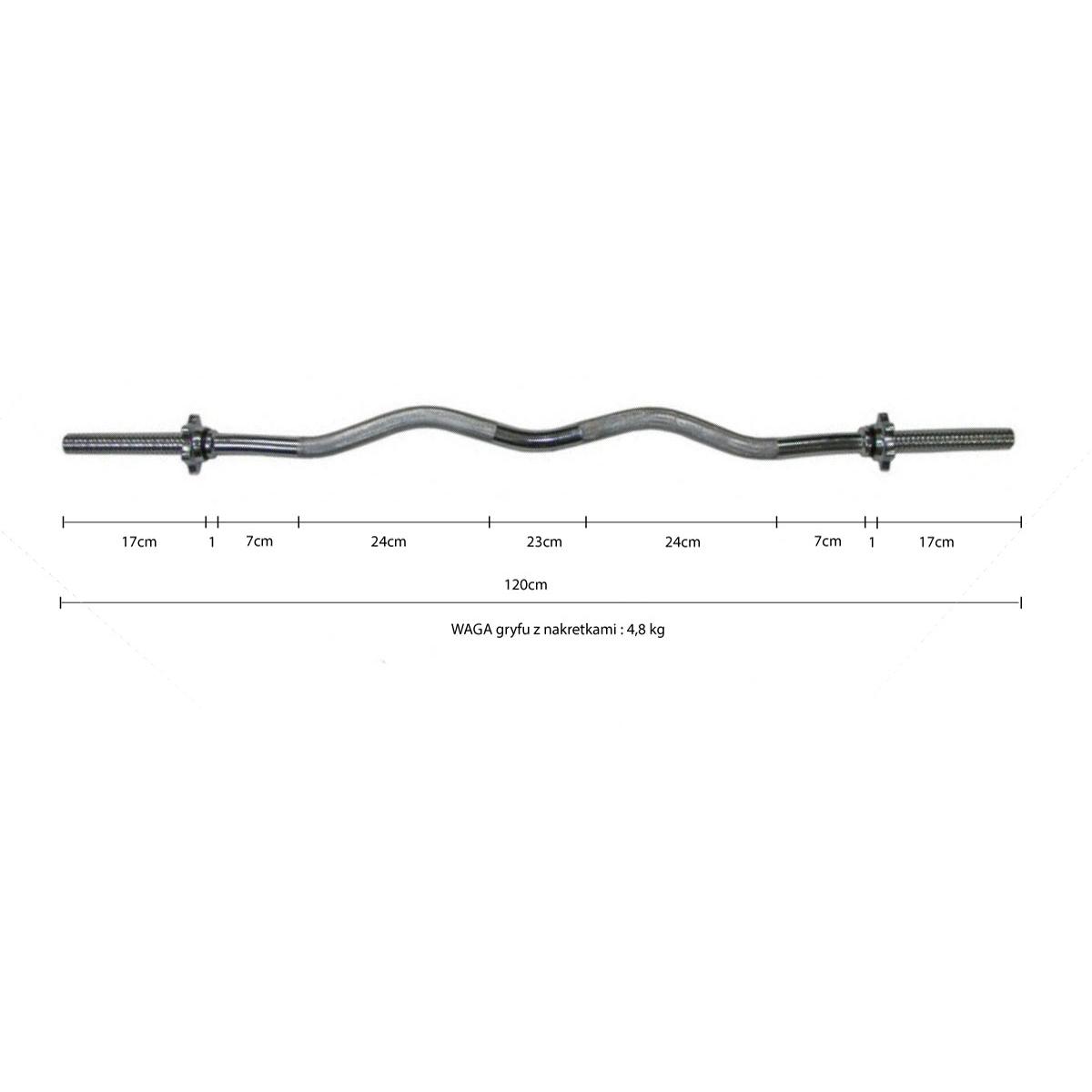 Wykonany z wysokiej jakości stali chromowanej 120 cm gryf o średnicy 25,4 mm jest trwały i odporny na uszkodzenia mechaniczne, a dołączone zaciski zabezpieczone gumowymi nakładkami zapobiegają tarciu i rysowaniu się talerzy. Maksymalne obciążenie do 120 kg pomoże Ci osiągnąć wymarzone rezultaty i posłuży Ci przez wiele lat zachowując świetny wygląd.