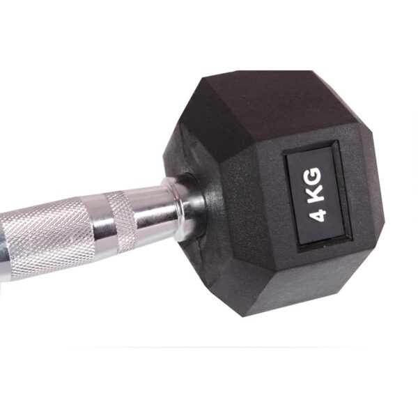 Hantla posiada ergonomiczny, żebrowany uchwyt gwarantujący dobre wyczucie ciężaru w dłoni oraz antypoślizgowa powierzchnię, zapewnia wysoki komfort nawet podczas długich i wymagających treningów.