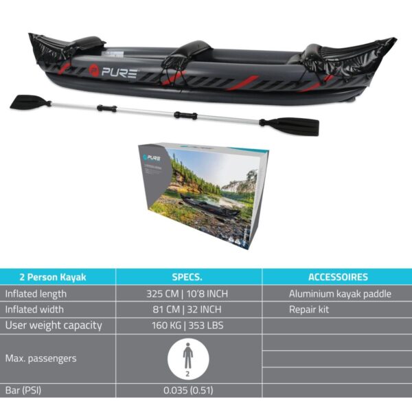 KAJAK XPRO 325CM 2 OSOBOWY PURE 4 FUN to połączenie funkcjonalności, trwałości i wygody. Jego przemyślana konstrukcja i praktyczne rozwiązania sprawiają, że jest idealnym wyborem na wodne przygody dla dwojga.