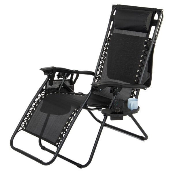 - Materiał: stalowa konstrukcja o średnicy 22 mm o grubości 1 mm, siedzenie i daszek Textilene 2×1, podłokietniki i stoliczek tworzywo sztuczne