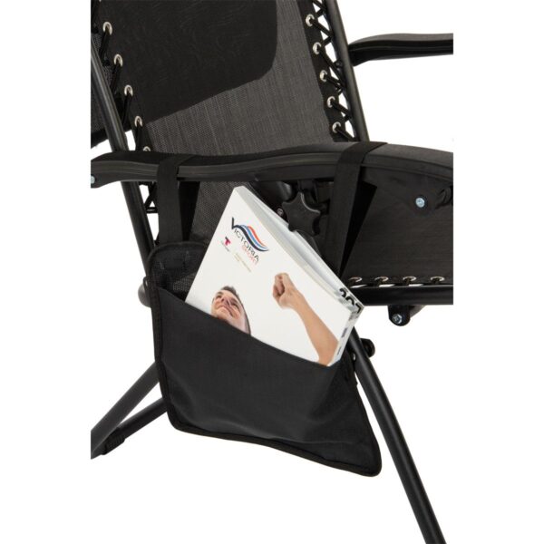 Miękki zagłówek pozwoli Ci wygodnie oprzeć na nim głowę i przyjąć wygodną pozycję podczas leżenia. Regulowany daszek, zagwarantuje przyjemny cień lub dostęp do pełnego słońca, kieszeń boczna stały dostęp do gazety lub ulubionej książki, a stoliczek pozwoli postawić kubek z kawą, sok lub telefon. Stelaż fotela wykonany jest z solidnych i wytrzymałych stalowych rurek, utrzyma obciążenie aż do 120 kg!