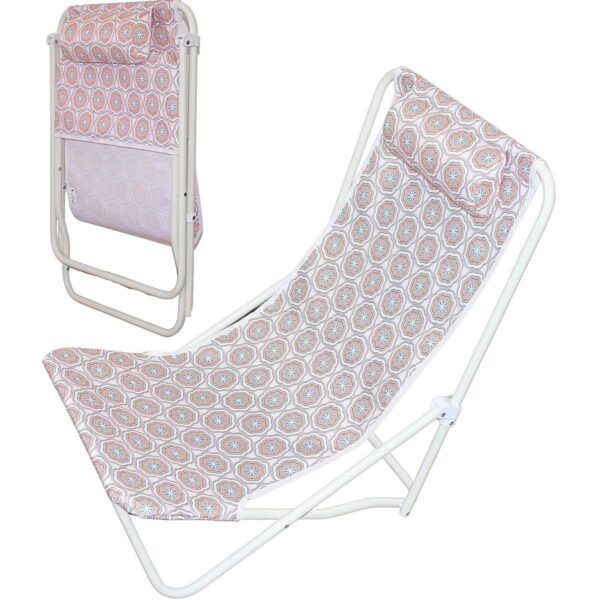 LEŻAK SKŁADANY PLAŻOWY Z ZAGŁÓWKIEM NIEBIESKO POMARAŃCZOWY to Twoja przepustka do błogiego odpoczynku – na plaży, w ogrodzie i gdziekolwiek chcesz złapać słońce. Rozkładasz, siadasz i… już jest dobrze!