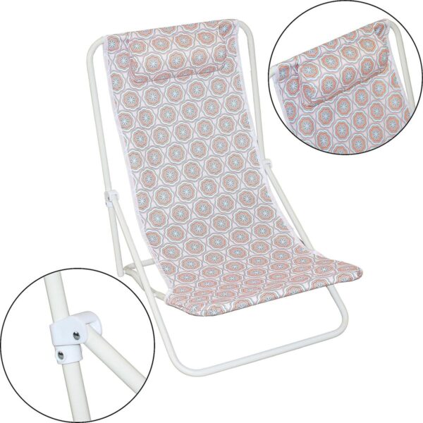 LEŻAK SKŁADANY PLAŻOWY Z ZAGŁÓWKIEM NIEBIESKO POMARAŃCZOWY to idealne rozwiązanie na wakacyjne dni. Wyposażony w stały zagłówek dla większego komfortu oraz solidną, składaną konstrukcję, świetnie sprawdzi się na plaży, działce, balkonie czy kempingu. Dzięki kompaktowym wymiarom po złożeniu jest łatwy w transporcie i przechowywaniu.