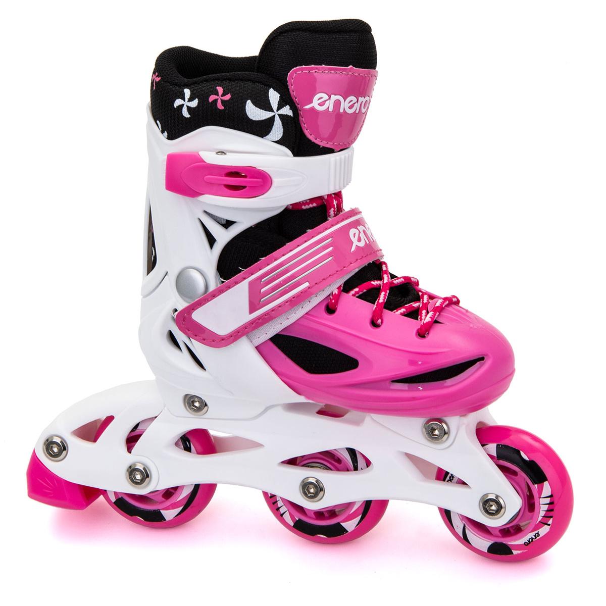 ŁYŻWOROLKI – 3 SKATE – ŁYŻWY- WROTKI 4W1 ENERO gwarantują czystą przyjemność z jazdy. Wyposażone są w lekką i mocną płozę z materiału PP, hamulec przy jednej rolce, kółka PVC o średnicy 64 mm i szerokości 22 mm, regulowane 3 zapięcia oraz regulację rozmiaru. Kółka z tworzywa PVC oraz łożyska ABEC 5 pozwalają na mniejsze opory toczenia, dobrze adoptują się do podłoża, idealnie pasują do nauki lub spokojnej rekreacyjnej jazdy. Wzmocniony wierzch obuwia , szeroki wygodny krój oraz miękka wyściółka wokół kostki zwiększają znacznie komfort użytkowania podczas jazdy. Ostrze łyżwy wykonane ze stali nierdzewnej jest odporne na uszkodzenia oraz rdzę.