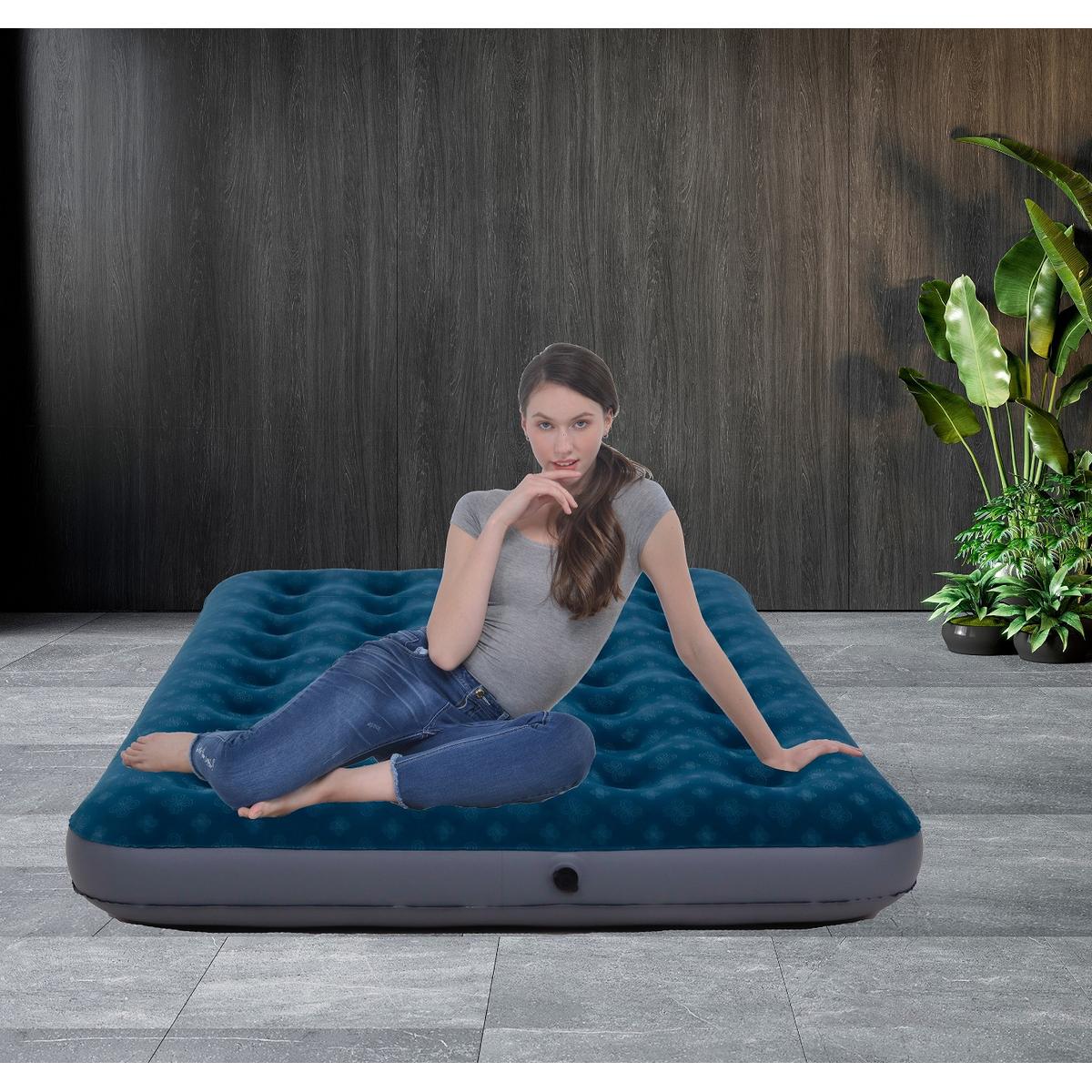 Dzięki flokowanej powierzchni materac jest przyjemny w dotyku i zapewnia doskonałą izolację termiczną. Idealny na chłodne noce pod namiotem oraz podczas wypoczynku na świeżym powietrzu. Jego ergonomiczna konstrukcja dopasowuje się do kształtu ciała, oferując wygodę i odpowiednie podparcie kręgosłupa.