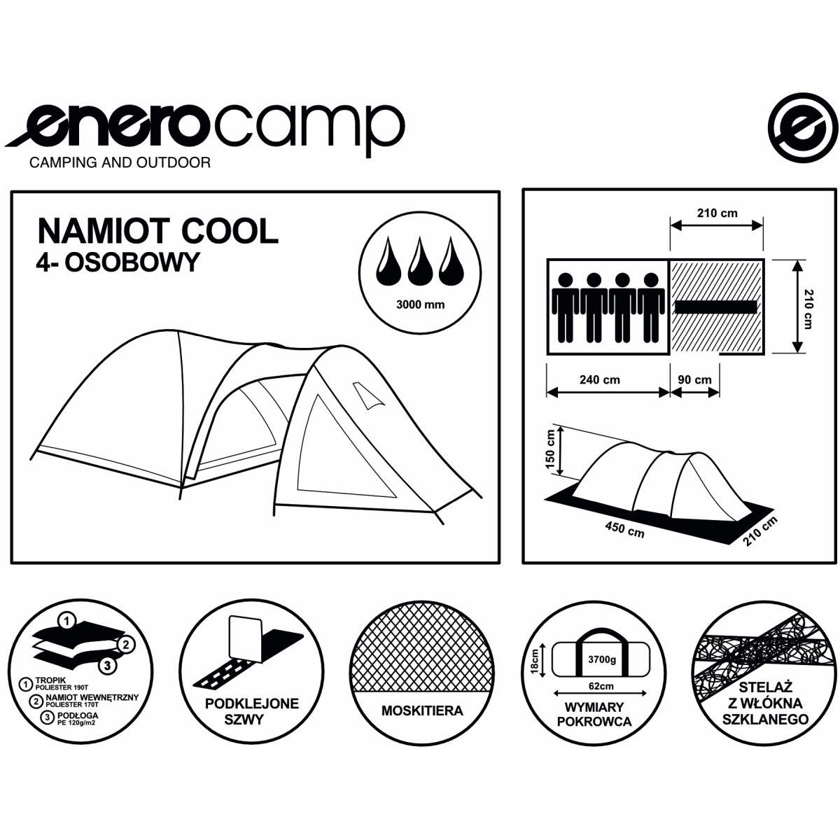 Jeżeli potrzebujesz przenośnej sypialni, uwielbiasz kempingi i noclegi na łonie natury to NAMIOT TURYSTYCZNY 4 OSOBOWY COOL ENERO CAMP będzie idealny.