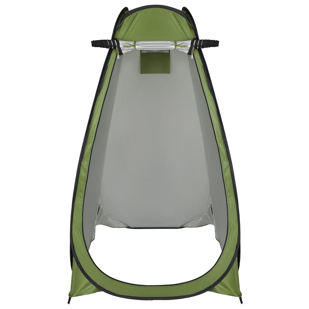 Wymiary namiotu pozwolą wygodnie przebrać np.: mokry strój na suche ubrania, wytrzeć się ręcznikiem, umyć za pomocą turystycznego prysznica lub skorzystać z turystycznej toalety przenośnej.