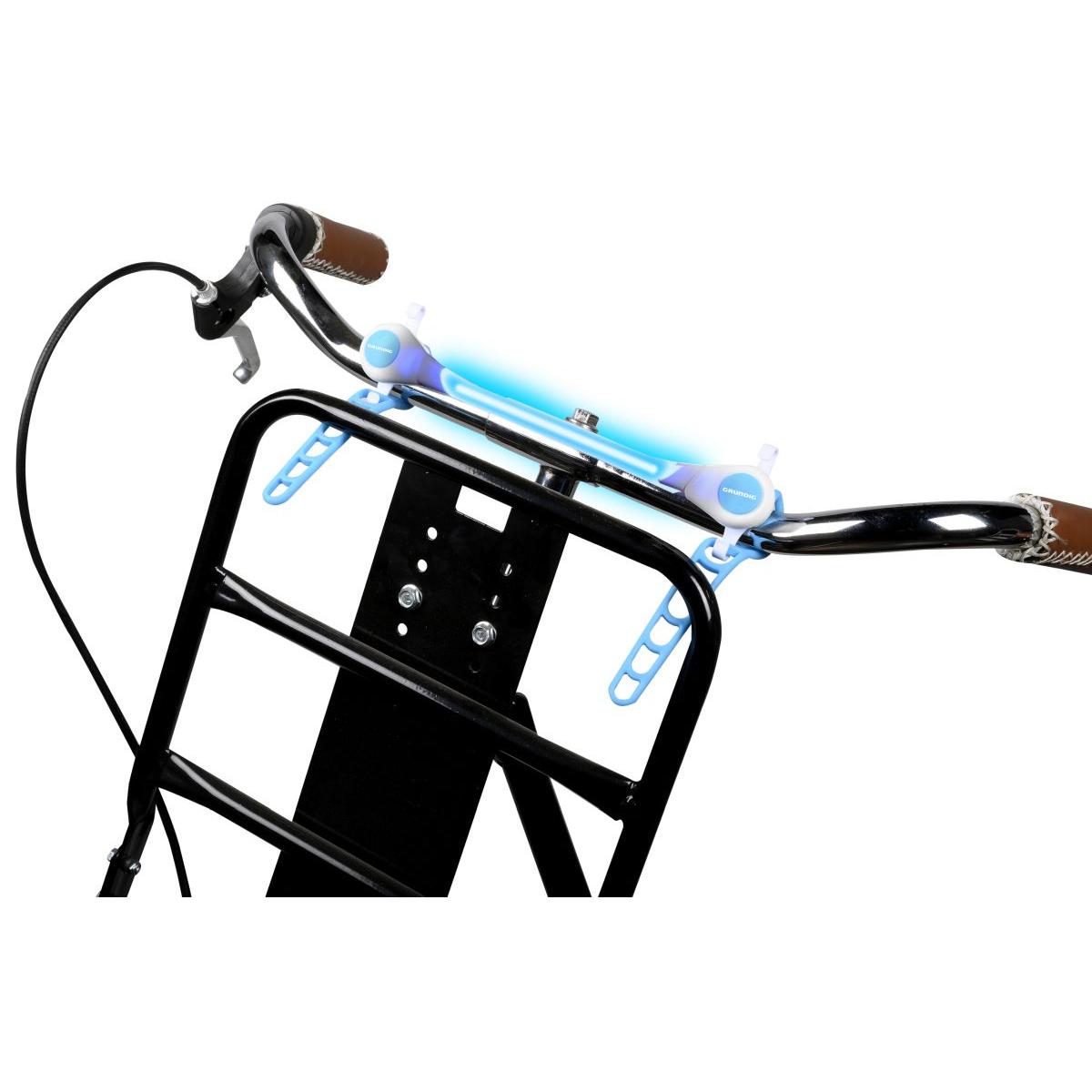 Opaska marki GRUNDIG zapewni Ci jasne światło generowane z diod LED o szerokim kącie świecenia, a specjalne miękkie zapięcie z możliwością obrotu o 360 ° pozwoli ją zapiąć na dowolnym przedmiocie i w dowolnym miejscu, idealnie dopasujesz jej średnicę do swoich potrzeb.