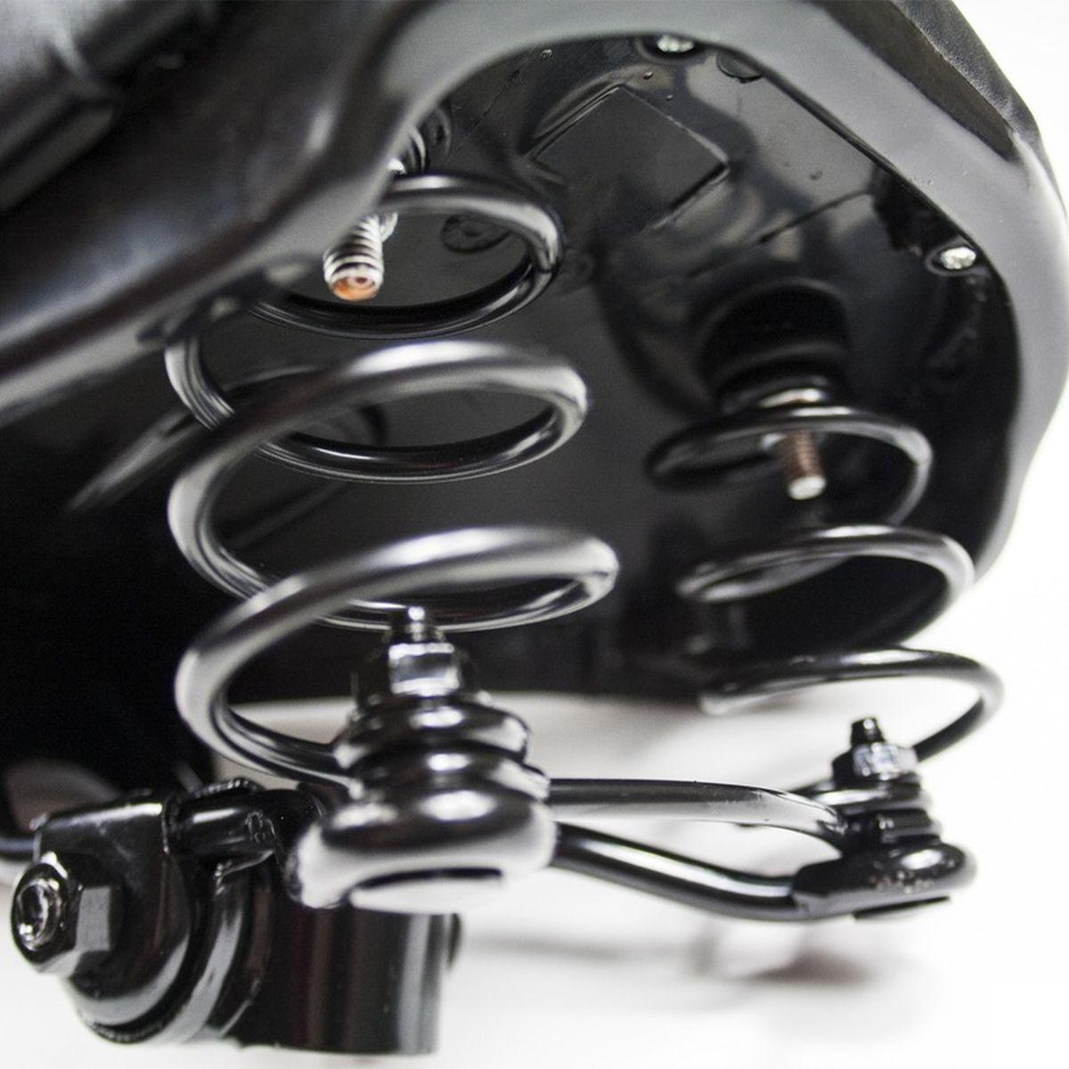 Miękkie żelowe siodełko, ze sprężynami dobrze zamortyzuje wstrząsy i nierówności podłoża.