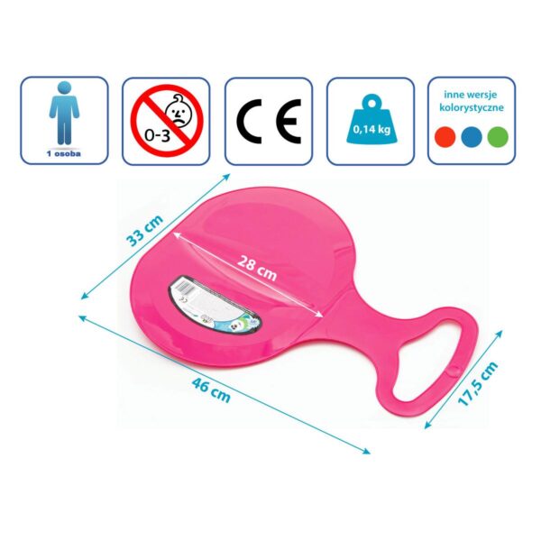 - plastikowa rączka w przedniej części ślizgu gwarantuje bezpieczny zjazd w preferowanej siedzącej lub leżącej pozycji