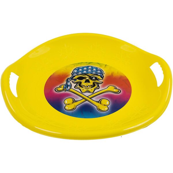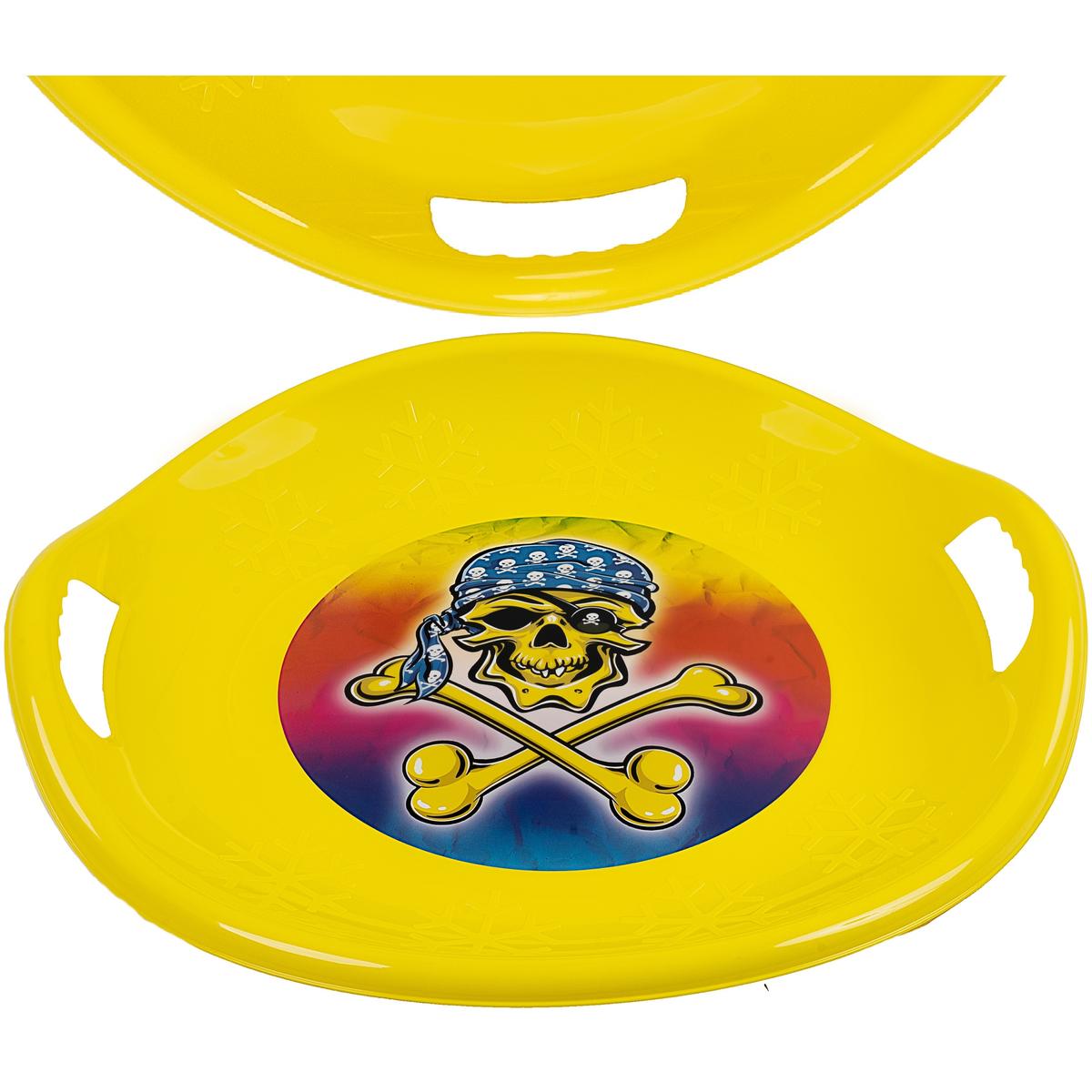 ŚLIZG TALERZ ZJAZDOWY UFO ŻÓŁTY PROFILOWANY R.M oferuje świetną zabawę na zaśnieżonych górkach. Wykonany dobrej jakości tworzywa sztucznego, zapewni bezpieczeństwo i komfort użytkowania. Jego okrągła i profilowana konstrukcja sprawia, że jest łatwy do manewrowania, a dodatkowe uchwyty po bokach pozwolą na mocny chwyt podczas zjazdu.