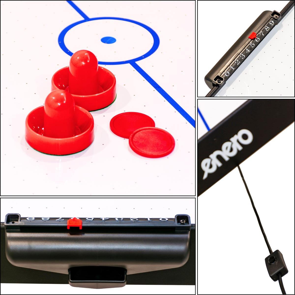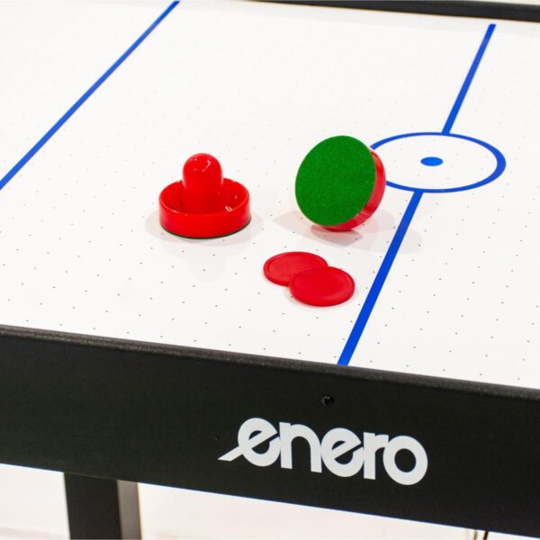 Stół posiada specjalny wentylator podłączany do prądu, który poprzez perforowaną powierzchnię wydmuchuje powietrze, lekko unosząc krążek. Daje to efekt podobny do sunięcia krążka po tafli lodu.