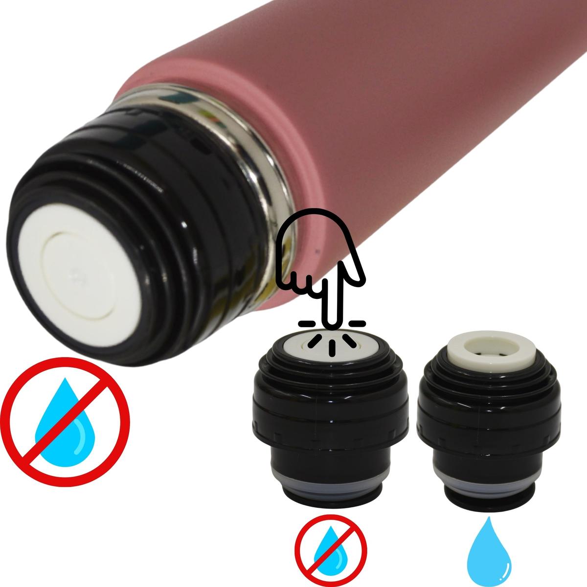 Termos ma szczelną nakrętkę z silikonową uszczelką dzięki czemu szybko i łatwo napijesz się ulubionego napoju bez utraty jego ciepła.