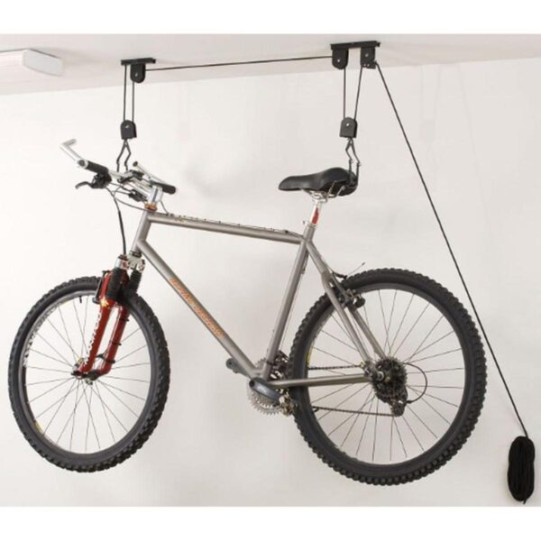 Dzięki długiej linie dołączonej do zestawu, rower nie tylko w prosty sposób wciągniesz pod sufit do maksymalnej wysokości 4 metrów, ale też wygodnie zawiesisz na dowolnej wysokości podczas naprawy.