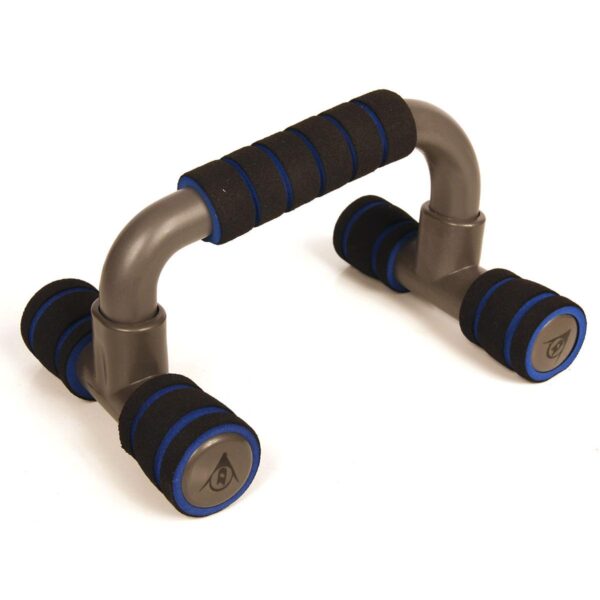 Szukasz czegoś do ulepszenia jakości wykonywanych pompek? UCHWYTY DO POMPEK PVC EVA DUNLOP NIEBIESKIE pomogą udoskonalić Twój trening, dzięki nim zyskasz większą wygodę podczas ćwiczeń!