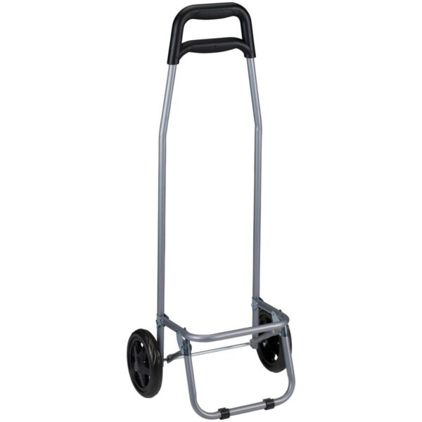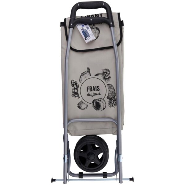 Metalowy stelaż zapewnia wytrzymałość i stabilność podczas transportu nawet cięższych zakupów. Jest zaprojektowany tak, aby pomieścić torby z zakupami, a nawet większe przedmioty, co eliminuje konieczność noszenia ich ręcznie.