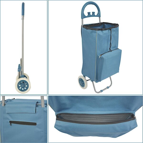 Masz dość dźwigania ciężkich siatek z zakupami? WÓZEK TORBA NA KÓLKACH NA ZAKUPY ZE STELAŻEM 40L BLUE zakupy stają się lekkie i wygodne! Dzięki solidnemu stalowemu stelażowi i pojemnej torbie to idealne rozwiązanie na bazarek, do sklepu i nie tylko.