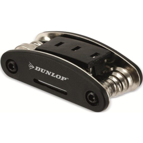 To wielofunkcyjne narzędzie marki Dunlop to praktyczne, składane narzędzie wykonane z hartowanej stali , którego nie powinno zabraknąć podczas Twojej wycieczki rowerowej. Ma 15 przydatnych funkcji i można go przechowywać w zamkniętej nylonowej torbie.