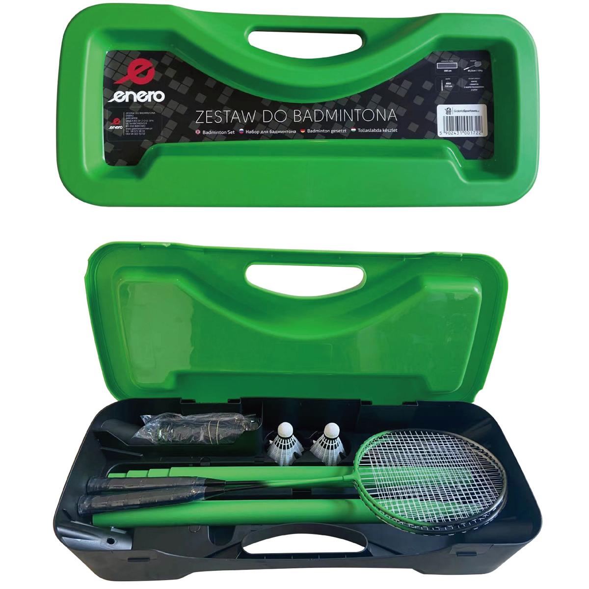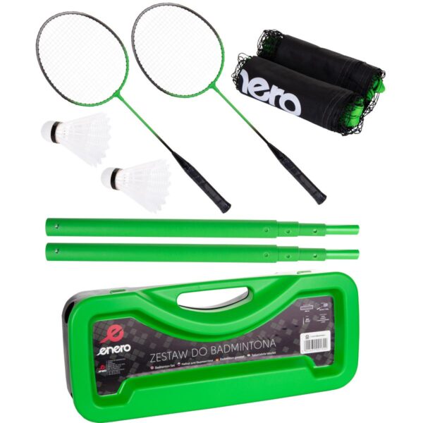 W ZESTAWIE PLAŻOWYM ENERO znajdziesz wszystko, czego potrzebujesz do rozegrania meczu z przyjaciółmi lub rodziną. Wystarczy otworzyć przenośną walizkę i złożyć części według instrukcji, zajmie Ci to dosłownie klika minut. Mocna siatka i solidny stelaż odporne na zmienne warunki atmosferyczne pozwolą na długi czas użytkowania. Konstrukcja zestawu może być wykorzystywana także na hali, dzięki temu, że nie ma konieczności montowania jej do podłoża na stałe (jest wolnostojąca). Dolną podstawę tworzą dwa słupki, umieszczone w otworach walizki, co gwarantuje stabilność i wytrzymałość konstrukcji. Dzięki poręcznej walizce w której jest schowany zestaw, łatwo go przechowasz i przetransportujesz. Dodatkowa lotka zabezpieczy grę w przypadku zagubienia lub zniszczenia pierwszej. Zestaw idealnie nadaje się na wypady nad wodę, do ogrodu na działkę, plac zabaw i boisko szkolne. Będzie tez idealnym prezentem dla fana gry w badmintona